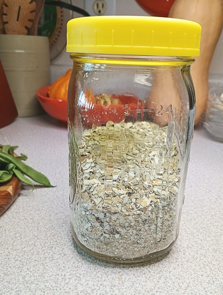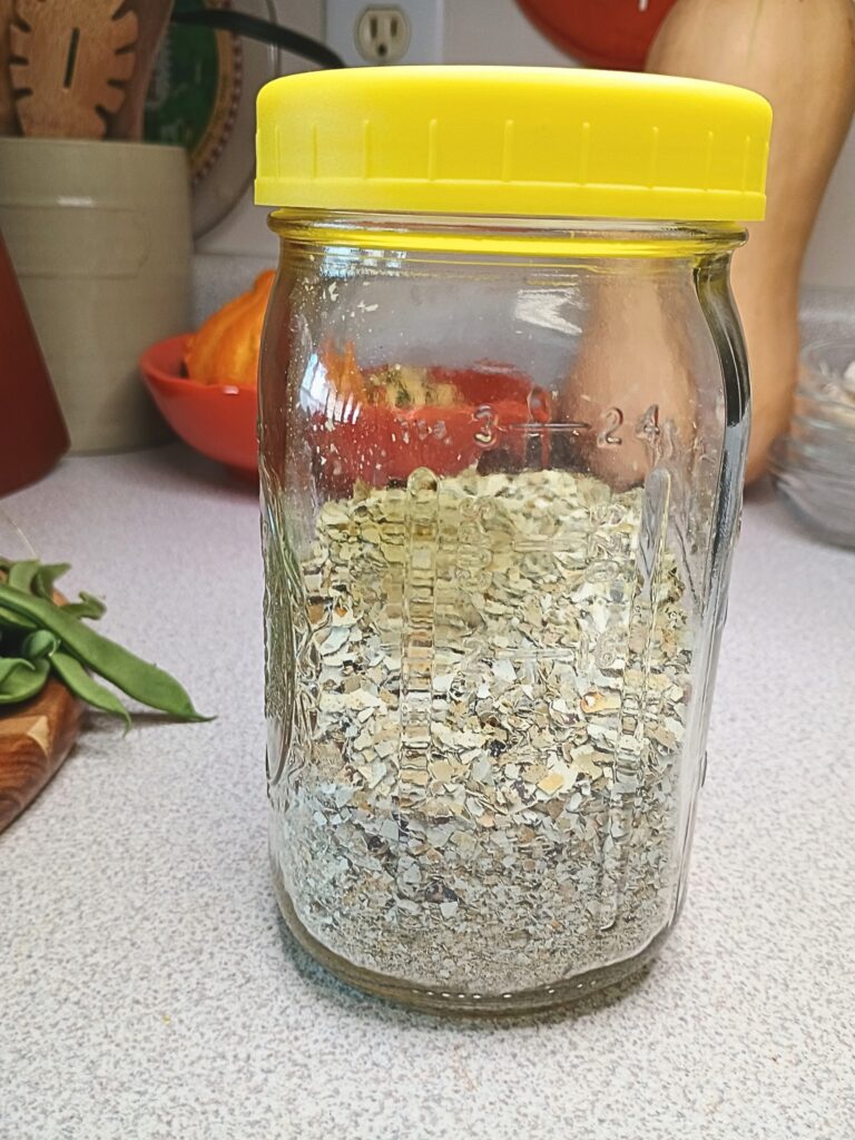 Once dried and crushed down, the shells make a coarse powder that I keep in a jar for future use. It’s simple, quick, and turns something you’d normally throw away into a valuable resource.