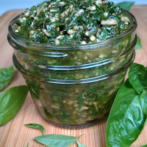 Nut Free Basil Pesto (Hand-Chopped or Coarse-Blend)